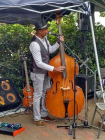 Roy Peter spielt Bass undKontrabass und singt – er tritt als Solokünstler auf und spielt Bass in der Smooth Jazz Combo „Piet Gorecki & friends.